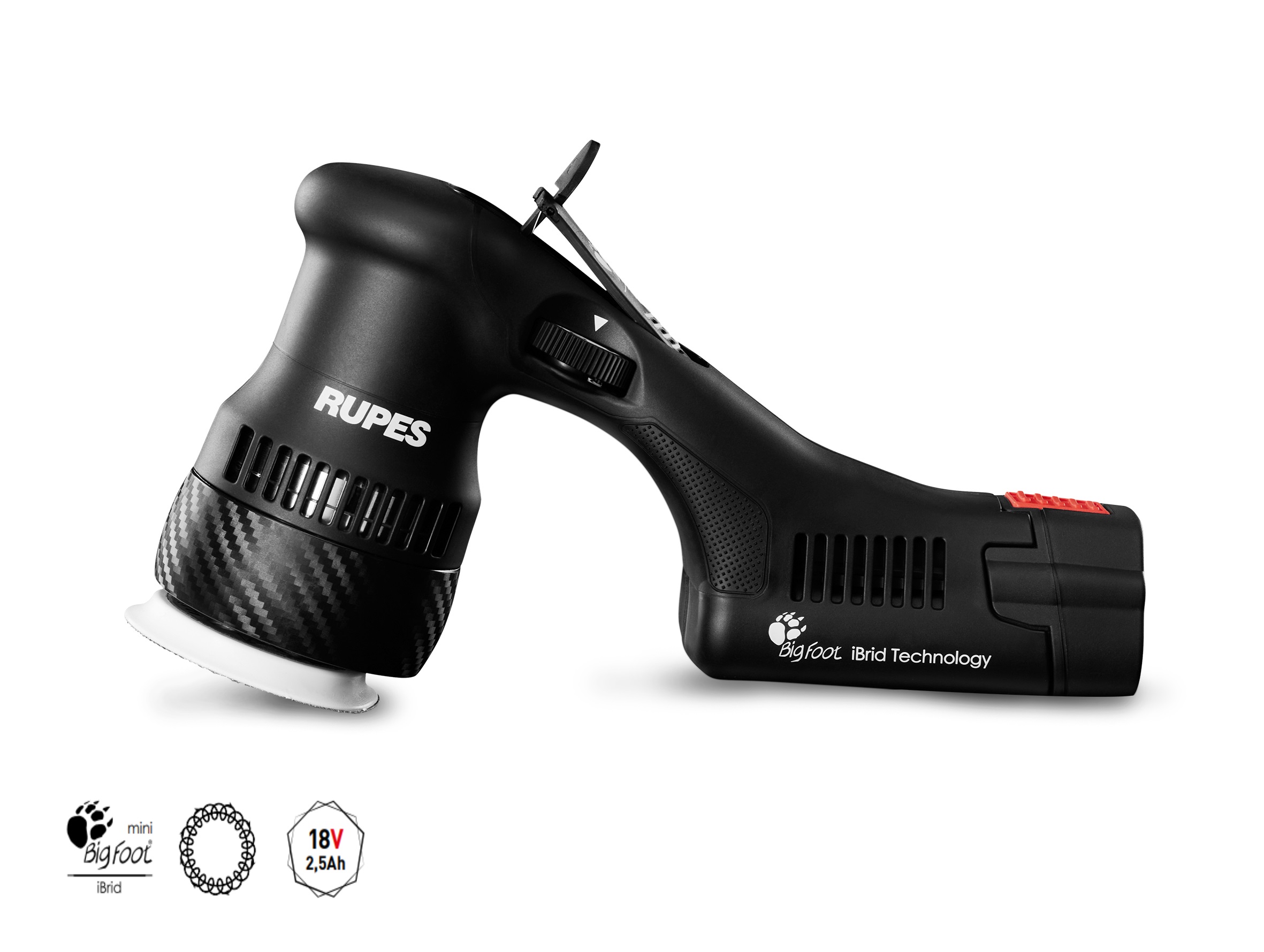 La nouvelle mini-polisseuse RUPES BIGFOOT HLR75 iBRID représente l’évolution des outils RUPES dotés de la technologie iBrid dual-power.