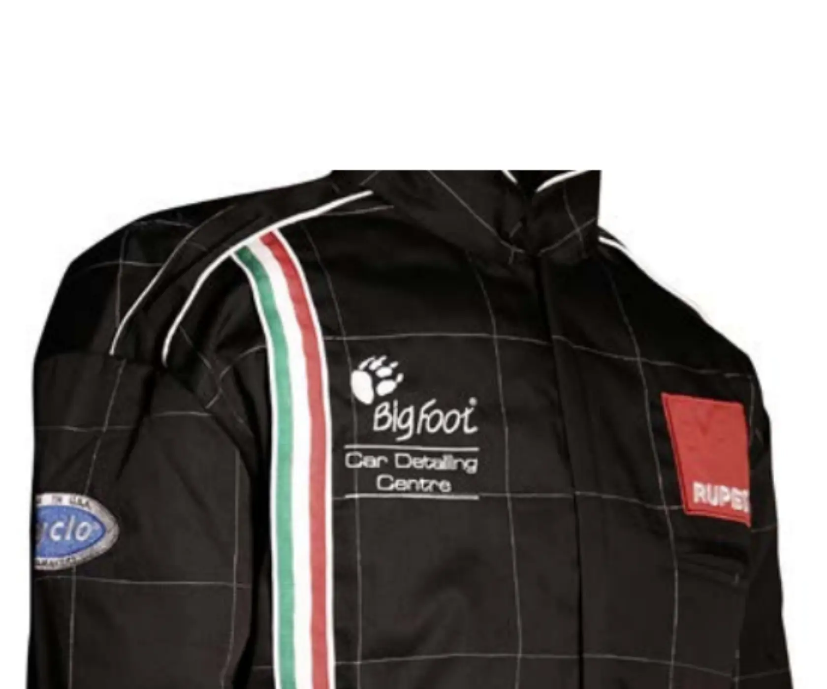 Sur les manches et le dos, il y a des emblèmes du système de polissage du corps BigFoot et des polisseuses Cyclo. Tous les logos et emblèmes des polos sont appliqués par broderie, après lavage ils conservent leur structure et leur couleur.