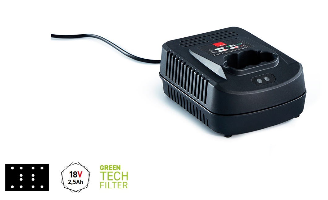• Le chargeur de batterie 9HC180LT est conçu sur mesure pour s’adapter au système de batterie unique de l’iBrid Mini. La station de recharge indique l’état de charge à l’aide de lampes LED intégrées et fournit une charge de 100 % de zéro à pleine en environ 35 minutes.
