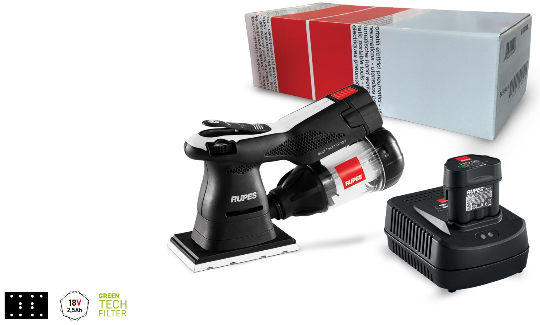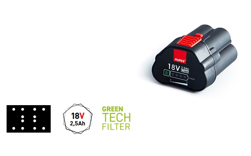 Le HSE73 utilise la même batterie lithium-ion du HLR75 iBrid Mini polisseuse pour assurer une compatibilité complète entre les outils de la nouvelle gamme de mini-outils RUPES iBrid.