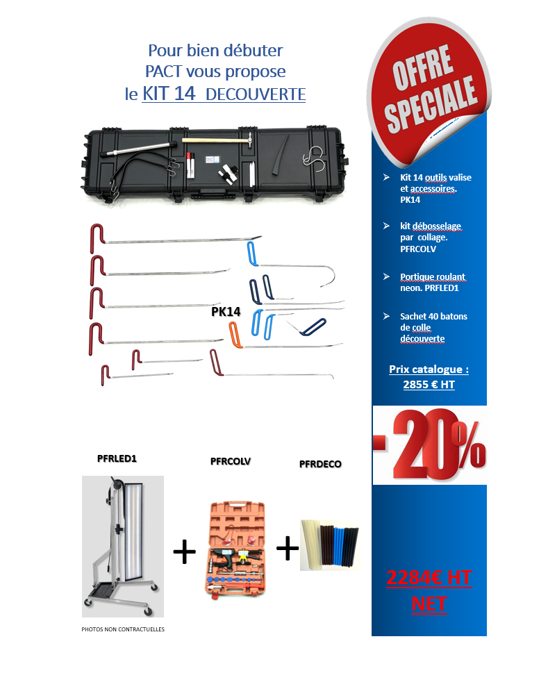 Kit débosselage sans peinture professionnel d’outils et d’accessoires DÉCOUVERTE