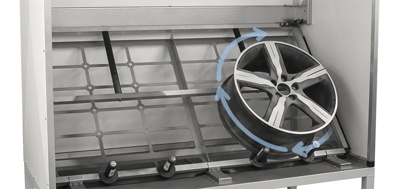 Équipée de rouleaux sous chaque baie, la cabine de pulvérisation pour roues garantit que les roues tournent avec une force minimale.